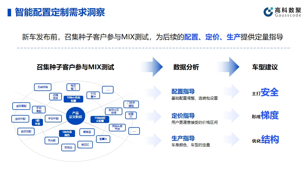智能配置的有效应用可以帮助企业提升产品和服务的智能化水平。在实际应用中,evo视讯官网帮助车企在新车发布前召集种子客户参与MIX测试,顺利获得收集种子客户的反馈和数据,车企能够精细调整产品配置,为后续的配置、定价、生产给予定量指导。同时,这种方法不仅有助于提高产品质量,还能提前发现潜在问题并及时解决。